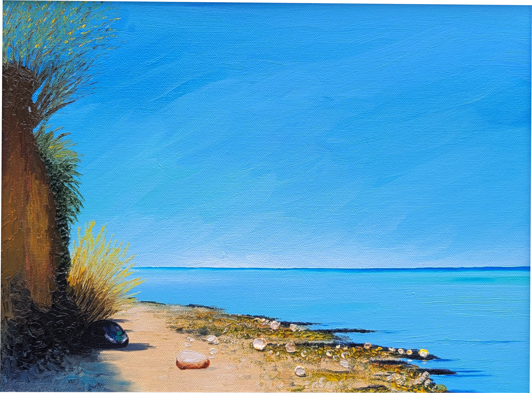 Product name: Hiddensee. PRODUCT INFORMATION: Dieses Produkt ist ein Kunstwerk und für dekorative Zwecke vorgesehen. Es ist kein Spielzeug und nicht für Kinder unter 14 Jahren geeignet. Enthält keine Kleinteile oder verschluckbaren Teile, die eine Erstickungsgefahr darstellen könnten. Nur für den Gebrauch in Innenräumen geeignet. Farben und Materialien entsprechen den geltenden EU-Vorschriften. Ölfarben auf Leinwand: Leinwand, Ölfarben, lichtecht und UV-beständig. VERANTWORTLICHER ANBIETER: Bettina Holz Art, E-Mail: info@bettinaholz.art, Adress:Postfach 740233, 13092 Berlin, Deutschland