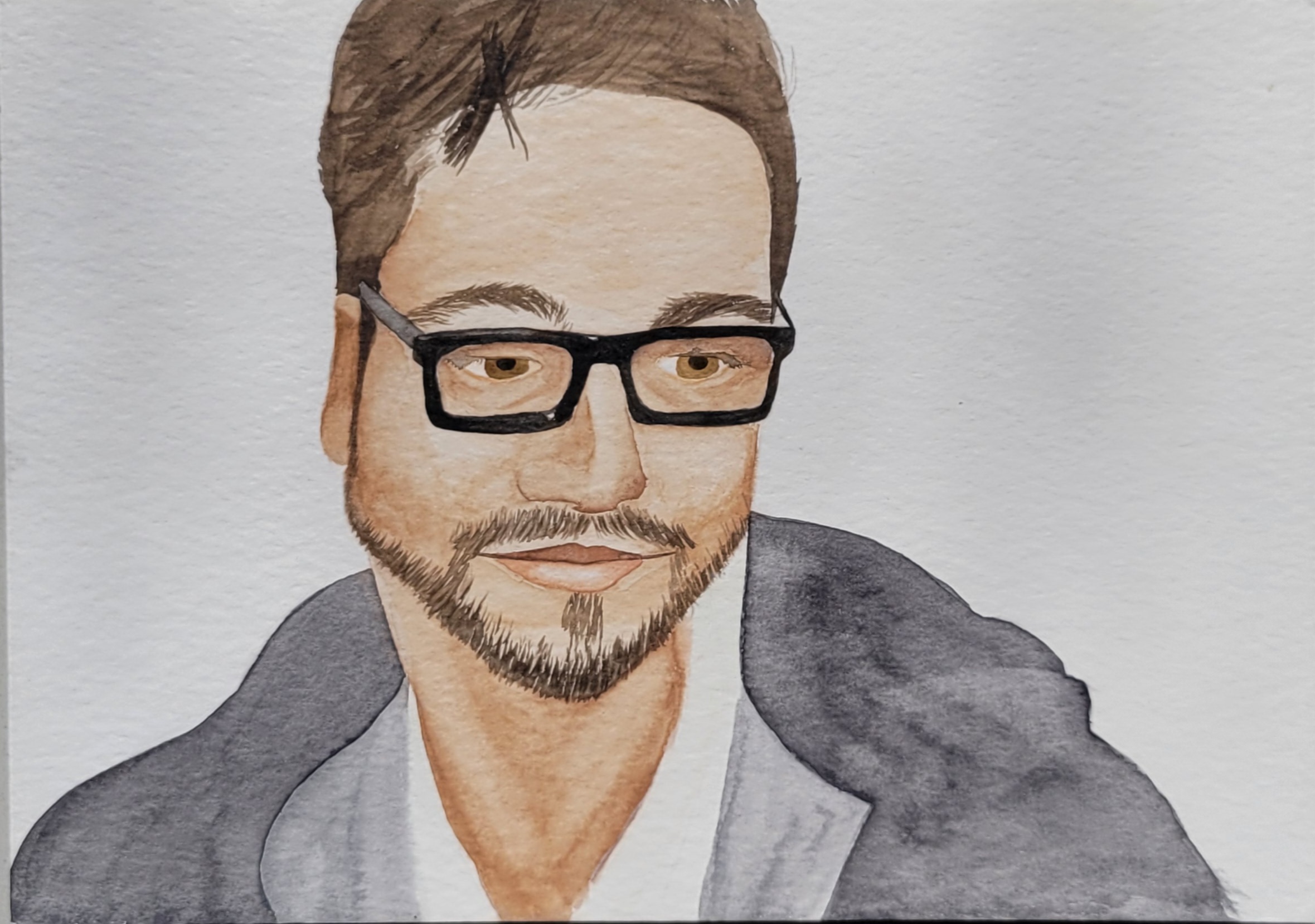Dieses Aquarell fängt ein seltenes Motiv in meiner Arbeit ein: ein Männerporträt, ruhig und völlig in Gedanken versunken. Momente wie diese, in denen jemand die Welt um sich herum vergisst, inspirieren mich am meisten.