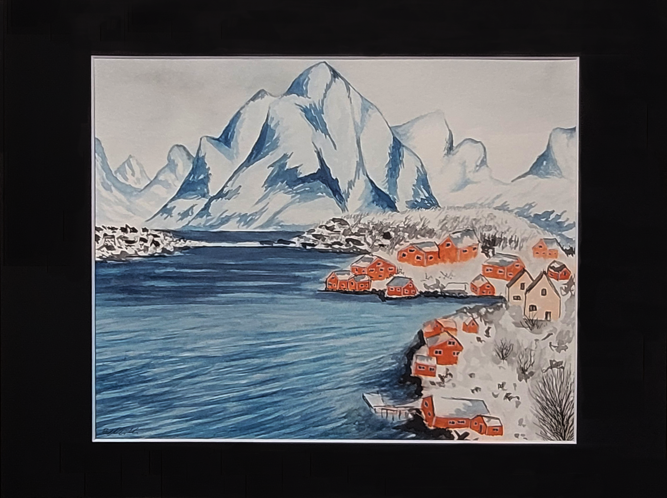 Product name: Fjord. PRODUCT INFORMATION: Dieses Produkt ist ein Kunstwerk und für dekorative Zwecke vorgesehen. Es ist kein Spielzeug und nicht für Kinder unter 14 Jahren geeignet. Enthält keine Kleinteile oder verschluckbaren Teile, die eine Erstickungsgefahr darstellen könnten. Nur für den Gebrauch in Innenräumen geeignet. Farben und Materialien sind ungiftig und entsprechen den geltenden EU-Vorschriften. TECHNISCHE DETAILS: Papiergemälde: Hochwertiges Künstlerpapier, Aquarellfarben, lichtbeständig. VERANTWORTLICHER ANBIETER: Bettina Holz Art, E-Mail: info.bettinaholz@gmail.com, Adress:Postfach 740233, 13092 Berlin, Deutschland