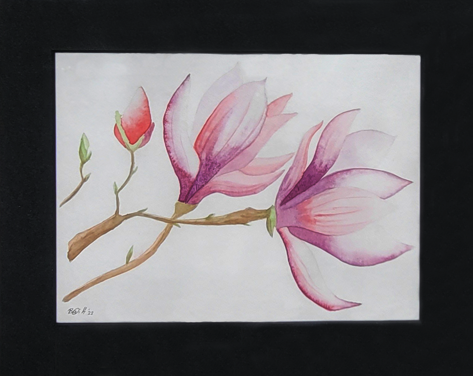 Product name: Magnolien PRODUCT INFORMATION: Dieses Produkt ist ein Kunstwerk und für dekorative Zwecke vorgesehen. Es ist kein Spielzeug und nicht für Kinder unter 14 Jahren geeignet. Enthält keine Kleinteile oder verschluckbaren Teile, die eine Erstickungsgefahr darstellen könnten. Nur für den Gebrauch in Innenräumen geeignet. Farben und Materialien sind ungiftig und entsprechen den geltenden EU-Vorschriften. TECHNISCHE DETAILS: Papiergemälde: Hochwertiges Künstlerpapier, Aquarellfarben, lichtbeständig. VERANTWORTLICHER ANBIETER: Bettina Holz Art, E-Mail: info.bettinaholz@gmail.com, Adress:Postfach 740233, 13092 Berlin, Deutschland