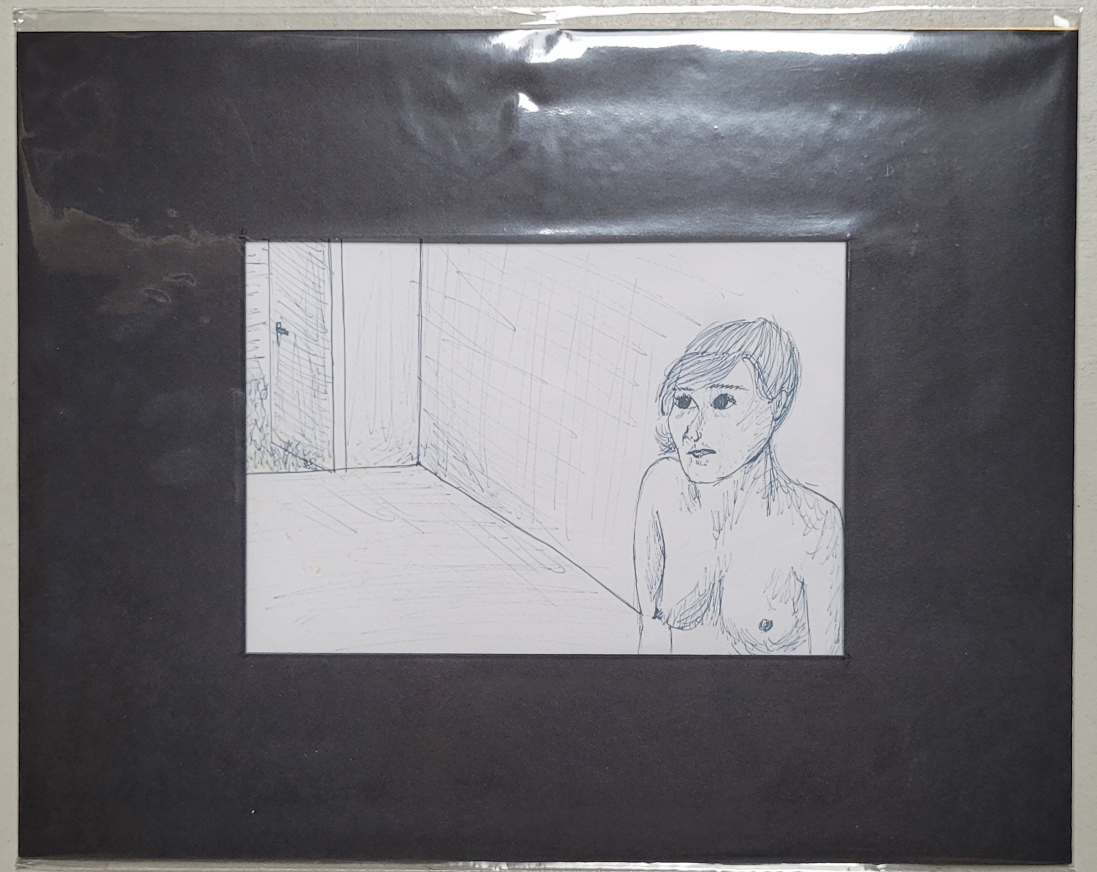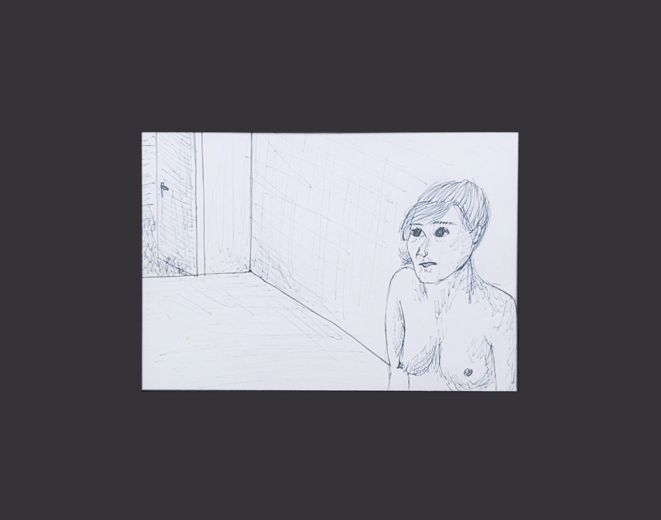 Product name: Akt mit Tür. PRODUCT INFORMATION:Dieses Produkt ist ein Kunstwerk und für dekorative Zwecke vorgesehen. Es ist kein Spielzeug und nicht für Kinder unter 14 Jahren geeignet. Enthält keine Kleinteile oder verschluckbaren Teile, die eine Erstickungsgefahr darstellen könnten. Nur für den Gebrauch in Innenräumen geeignet. Farben und Materialien sind ungiftig und entsprechen den geltenden EU-Vorschriften.TECHNISCHE DETAILS: Papiergemälde: Papier, Fineliner, lichtbeständig.VERANTWORTLICHER ANBIETER: Bettina Holz Art, E-Mail: info.bettinaholz@gmail.com, Adress:Postfach 740233, 13092 Berlin, Deutschland